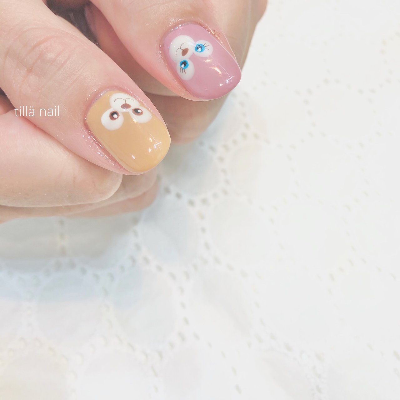 ハンド ワンカラー チェック キャラクター ベージュ Tilla Nail ティラネイル のネイルデザイン No ネイルブック