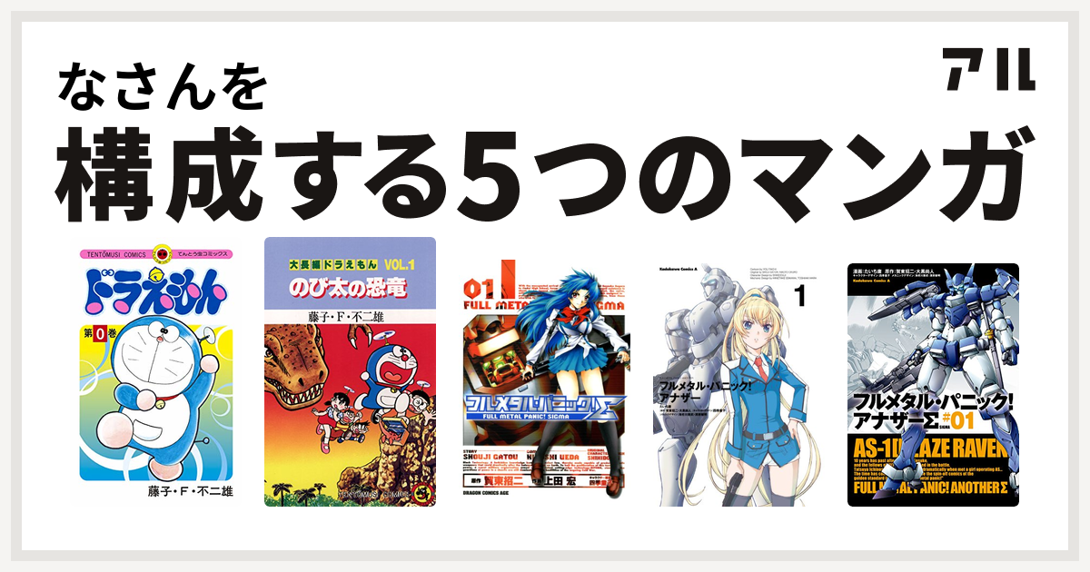 なさんを構成するマンガはドラえもん 大長編ドラえもん フルメタル パニック シグマ フルメタル パニック アナザー フルメタル パニック アナザーs 私を構成する5つのマンガ アル